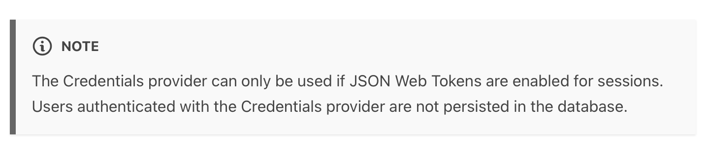 However, while it is generally flexible it does have some limitations related to managing authentication and sessions using the Credentials Provider. The one that comes up frequently is the decision not to support "out of the box" using this provider with the database strategy. Imposing this limitation is not accidental but an intentional choice by the developers of the library as indicated in the documentation.
